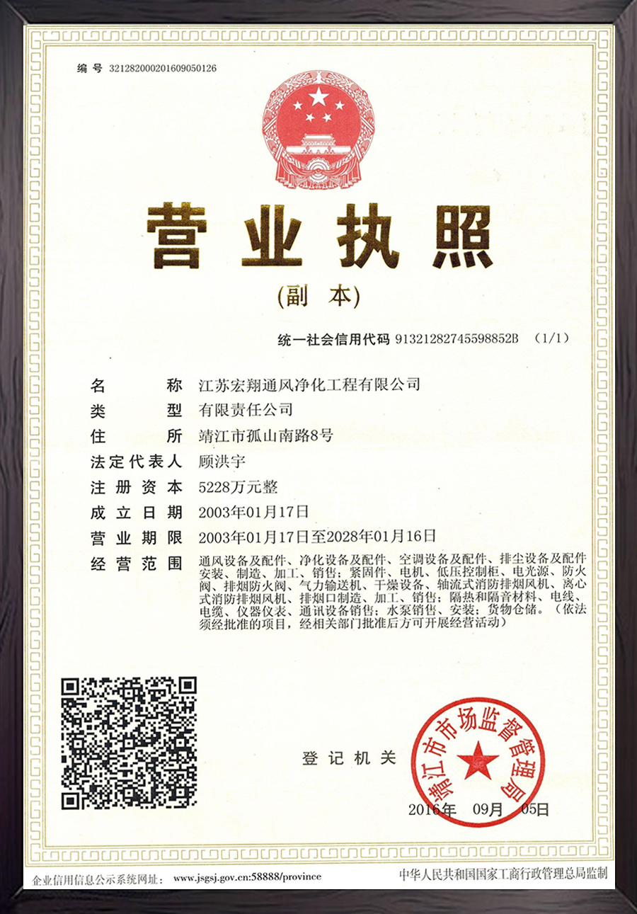 江蘇宏翔通風凈化工程有限公司 地址:江蘇省靖江市孤山南路8號