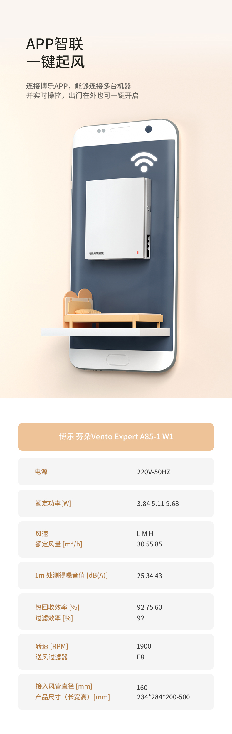 壁掛式新風系統 Vento Expert A85(芬朵系列) 優勢:恒溫恒氧、高效除霾、靜音舒適、A+節能認證、APP智能控制、防風防雨、無級調速、簡致外觀。 應用場景 已裝修房屋 單個房間 辦公室 咖啡廳 會議室 適用面積10-20m2 相關下載 畫冊: 博樂新風無管道式產品畫冊 購買方式 產品參數