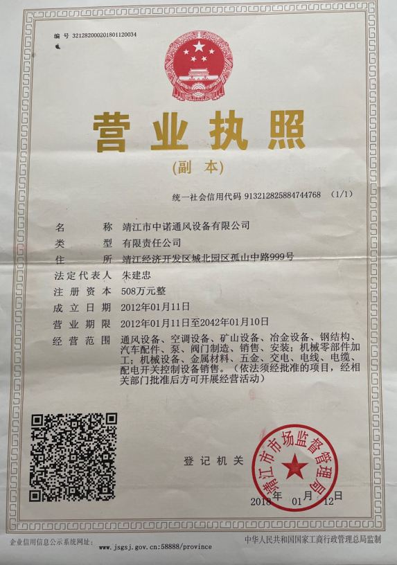 靖江市中諾通風設備有限公司 地址:靖江市孤山鎮(zhèn)孤山中路999號