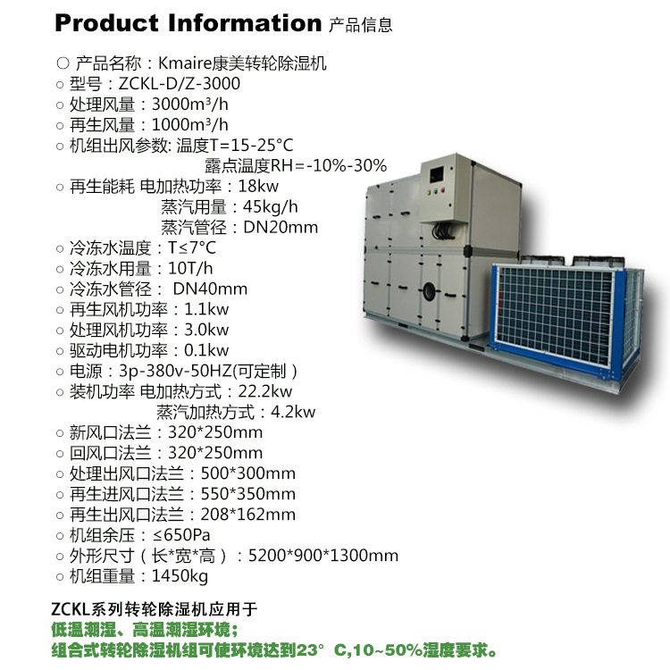 ZCKL系列轉(zhuǎn)輪除·濕空調(diào)機組使用時,用戶需提供T≤7°C的冷凍水;或由本公司隨機匹配提供相對冷量負(fù)荷的制冷機組。