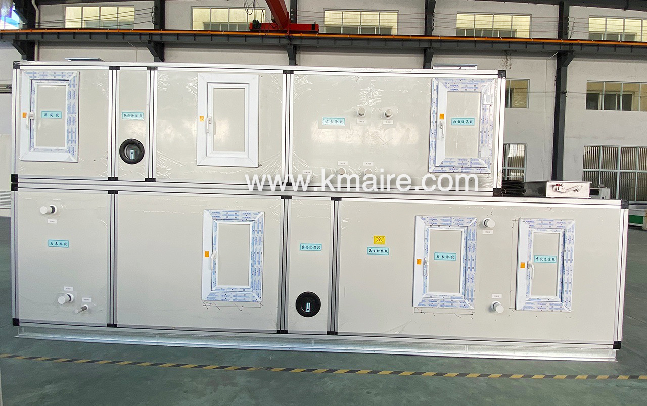 1、ZCKD低露點轉輪除濕機組主要由初效過濾段、新風表冷段、回風段、混合表冷段、超級硅膠或分子篩轉輪除濕段、冷吹再生區、后表冷段、中效過濾段、均流段、送風段和PLC電氣控制系統組成;