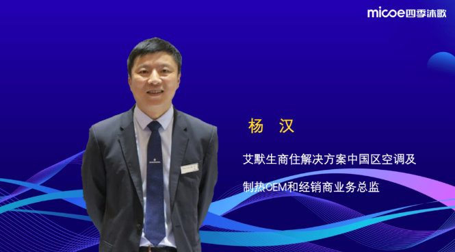 艾默生商住解決方案中國區空調及制熱OEM和經銷商業務總監楊漢:“四季沐歌圍繞控制系統+系統設計構建產品和技術真正的核心發展方向,一定能夠引領空氣能行業做大做強”。